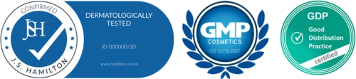 La empresa que lo produce cuenta con los certificados GMP Cosmetics y GDP. Mientras que el certificado GMP garantiza que los productos se elaboran y controlan en conformidad con las normas aplicables, el certificado GDP abarca la calidad y la gestión integral de todos los aspectos de transporte y distribución de productos sanitarios y de otro tipo.