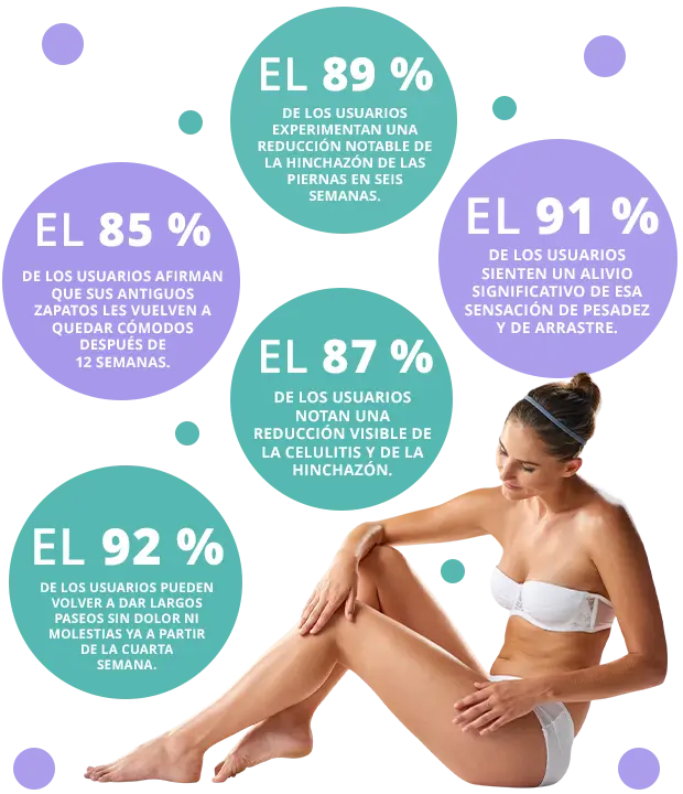 de los usuarios experimentan una reducción notable de la hinchazón de las piernas en seis semanas